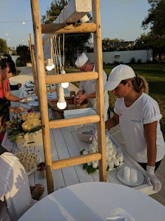 And the reception...oh, my. It was held at this gorgeous old farm, in the middle of this field of absolutely ancient olive trees, which was probably a center for olive-oil production at some point in time. It was beautiful and charming and magical, and, on this night, was set up for eating. There were little booths all around three sides of this massive, white stone patio--kinda like a street food festival, but classy--and they were full of food and drink.