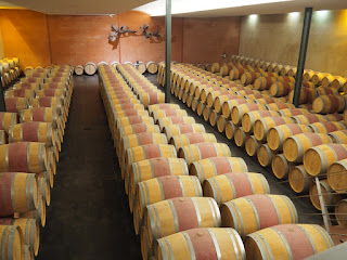 Paloumey's lovely barrel room. Another interesting fact: the center of the barrels are stained red to hide (tastefully, of course) the drops of wine spilled on the barrel whenever the vintner does a tasting. (Or so we were told. No idea as to the truth of this claim.)